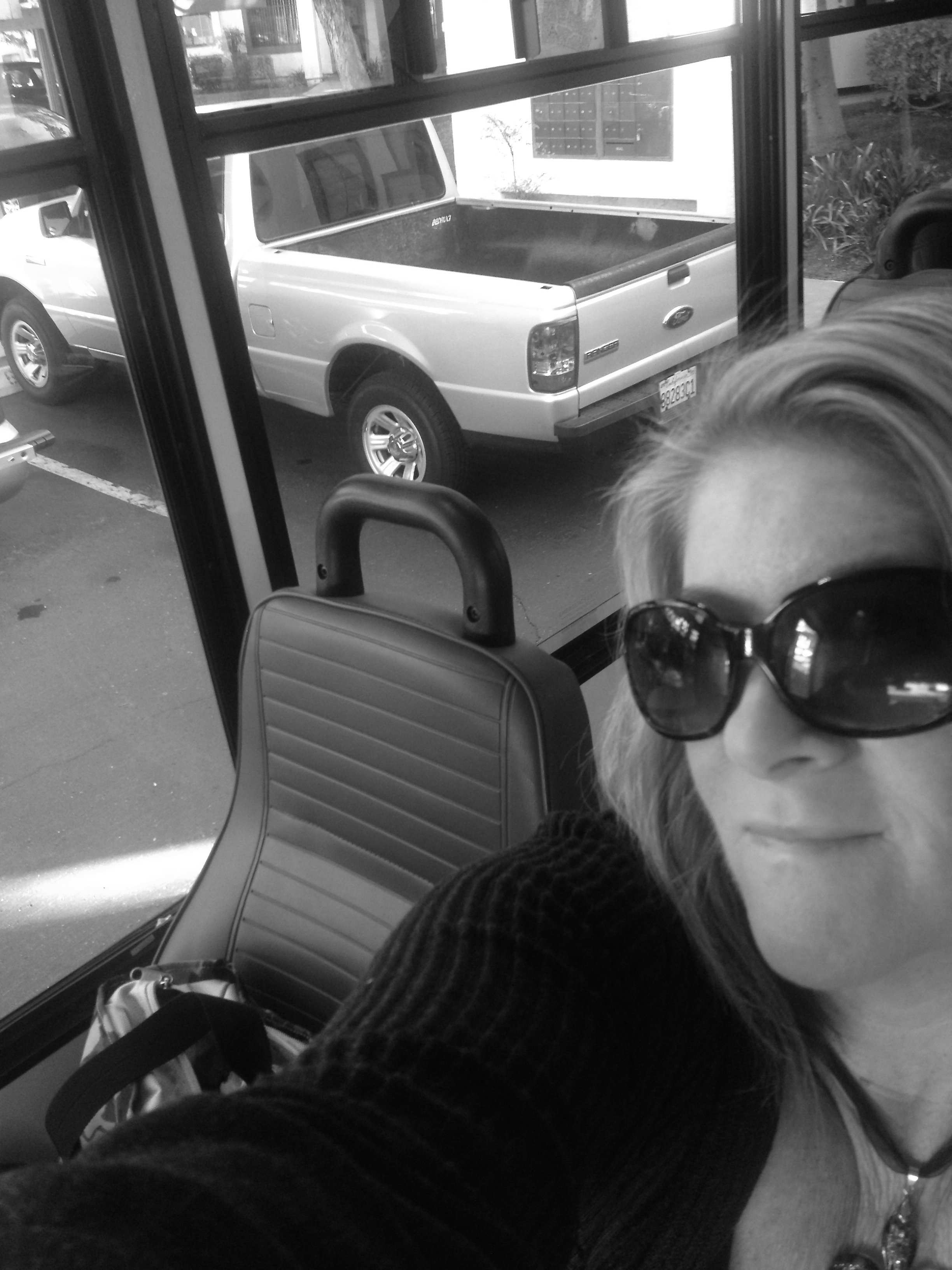 I wanted out. I broke free. I got on a bus by myself! Yep, I finally rode the local MTS Access bus for people with disabilities. I had them pick me up at my house and take me to the Braille Institute where I take classes. It’s only about 6 miles, so I thought it would be an easy first trip for Girl Gone Nervous! So, how was it?? It was not only easy, but I met a new friend who also goes to the Institute on the same day!